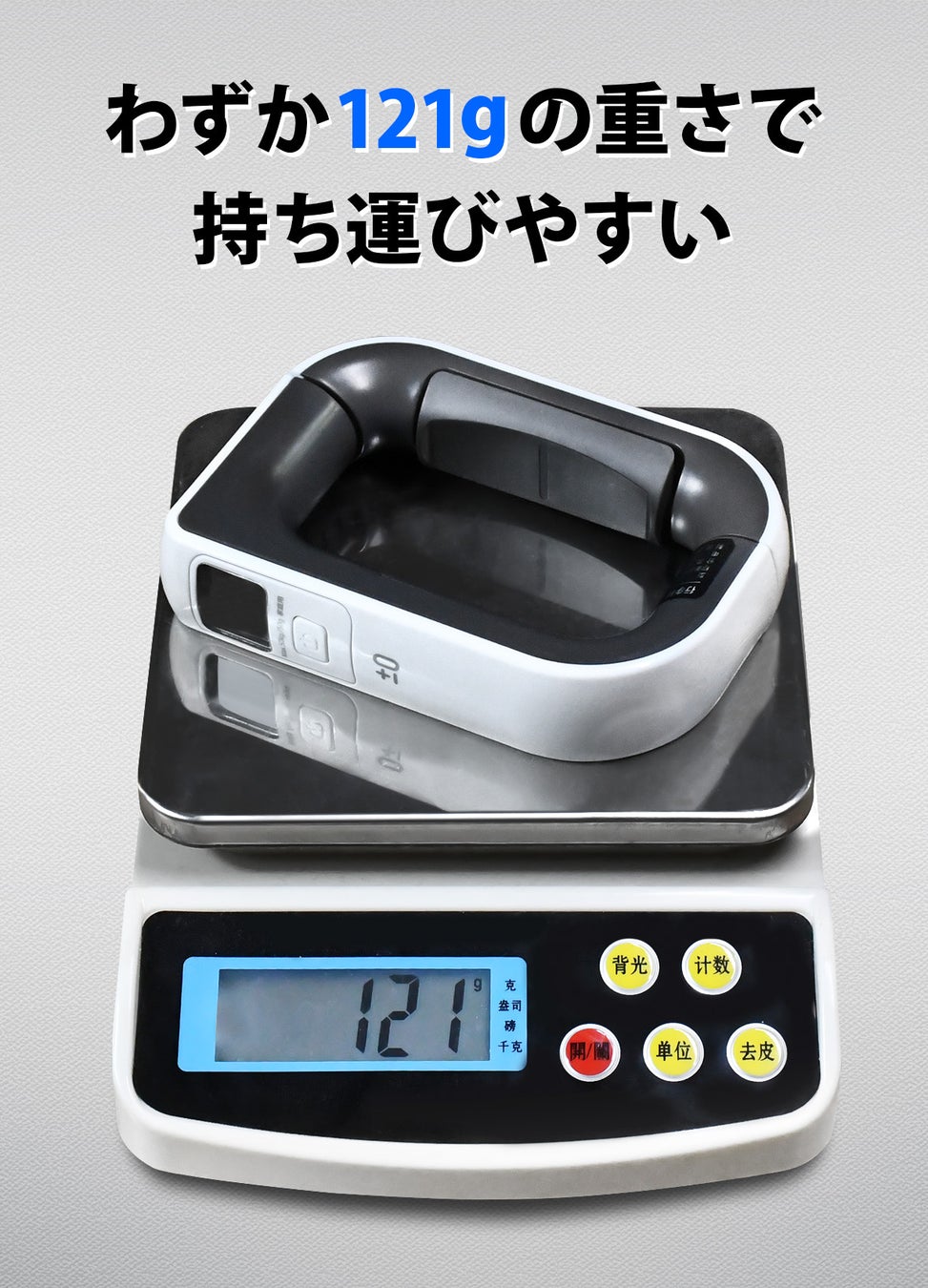 わずか121gの重さと小型なデザインにより、どこへでも持ち運びやすい。バッグやスーツケースなどに収納するが簡単、外出先での保管も楽ちんです。旅行や出張にとって超便利な電子はかりです。