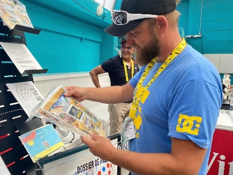 また、現地にいる海外メディアの皆様に大会ステッカーや英語版のチラシ配布なども行いました。現地での活動の様子は、海外メディアやツール・ド・フランス本大会のSNSでも紹介され、国内外へ向けて、ツール・ド・フランスさいたまクリテリウムを発信しました。