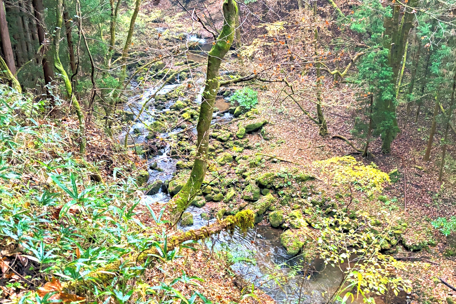 エリアの特徴となっている「赤沢の清流」は、敷地のそばを流れる透明度の高い渓流で、水音が静かに響く落ち着いた雰囲気をつくり出しています。
