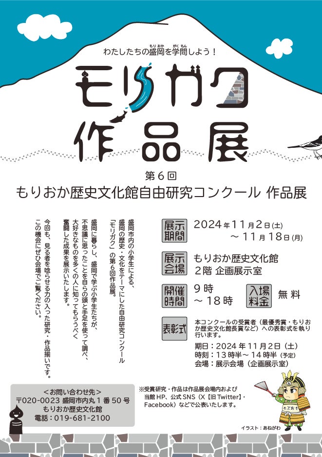 盛岡市内外の小学生による、盛岡の歴史・文化をテーマにした自由研究コンクール「モリガク」の第6回目となる作品展。