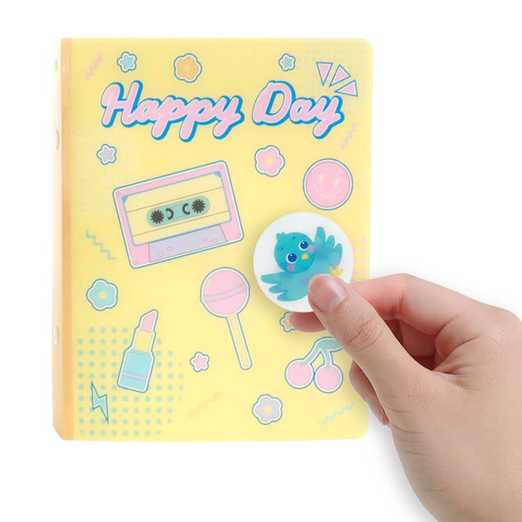 シール帳本体はクリアなPP製のため、透明を活かしたデザインにすれば中のシールが見えて可愛いです。