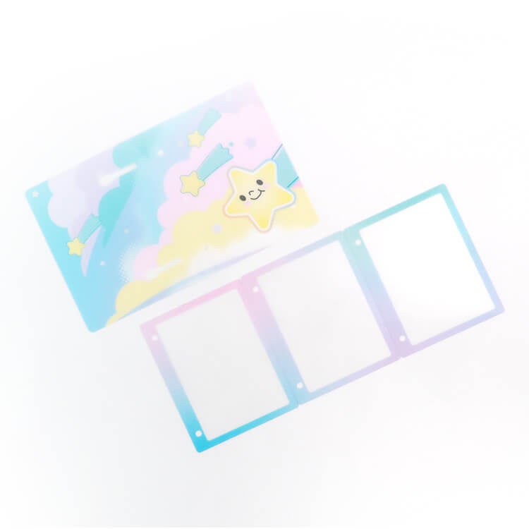 『シール帳(6穴タイプ)』は、シールを貼ってはがせる高透明なPETリフィル2枚がセットになったPP製のシール帳です。全面フルカラー印刷ができます。人気のシール帳をオリジナルで作製しませんか?
