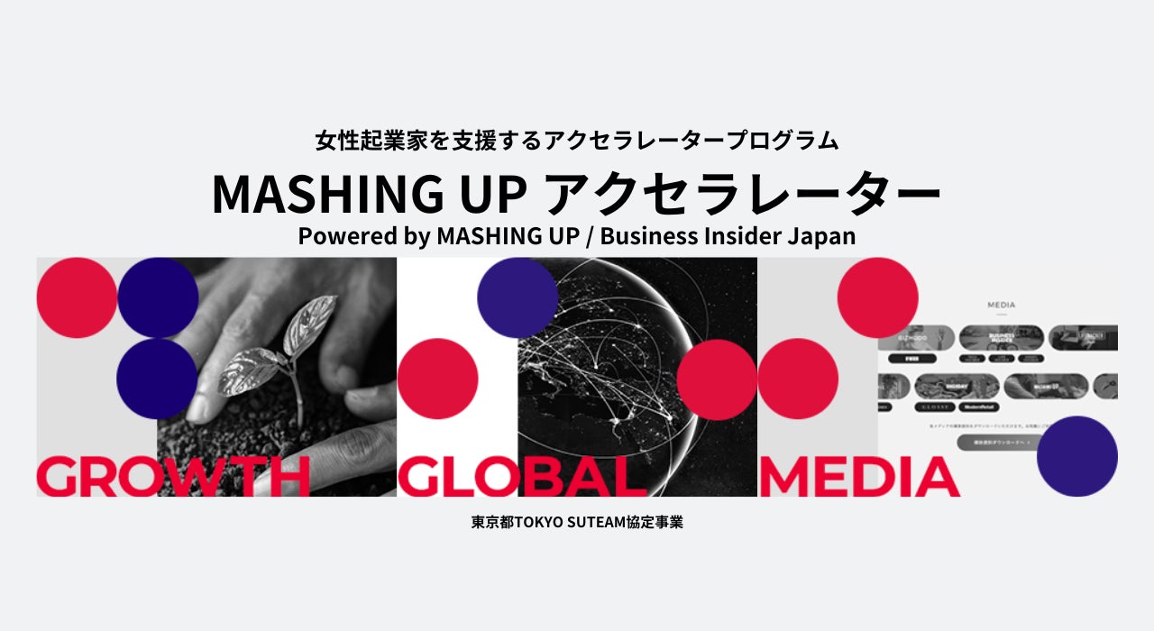 さらに本プログラムの最大の特徴は、メディアを活かした点です。メディアジーンが運営する、多様な視点で社会課題を捉え未来を考える「マッシングアップ(Mashing Up)」とスタートアップ支援を強化している経済メディア「ビジネス インサイダー ジャパン(Business Insider Japan)」が協働し、プログラム内容の充実をはじめ、記事掲載などメディアならではの発信とネットワークを活かしていきます。