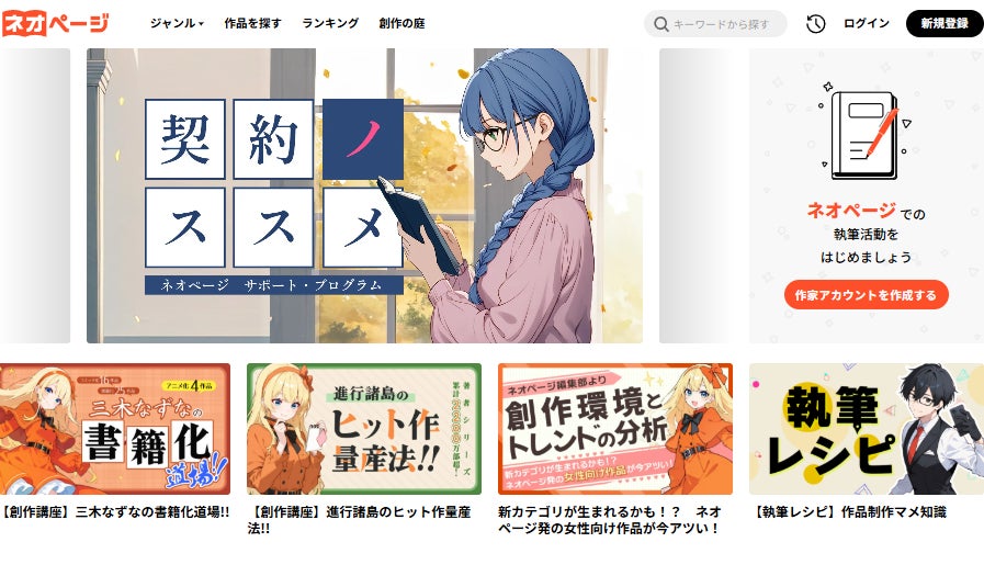 株式会社ネオページ(本社:東京都千代田区、代表取締役:小川 傑子、以下ネオページ)は、当社が運営するWeb小説投稿サイト「ネオページ」 https://www.neopage.com/ にて、ネオページ編集部による特集記事「創作環境とトレンドの分析」を公開いたしました。
