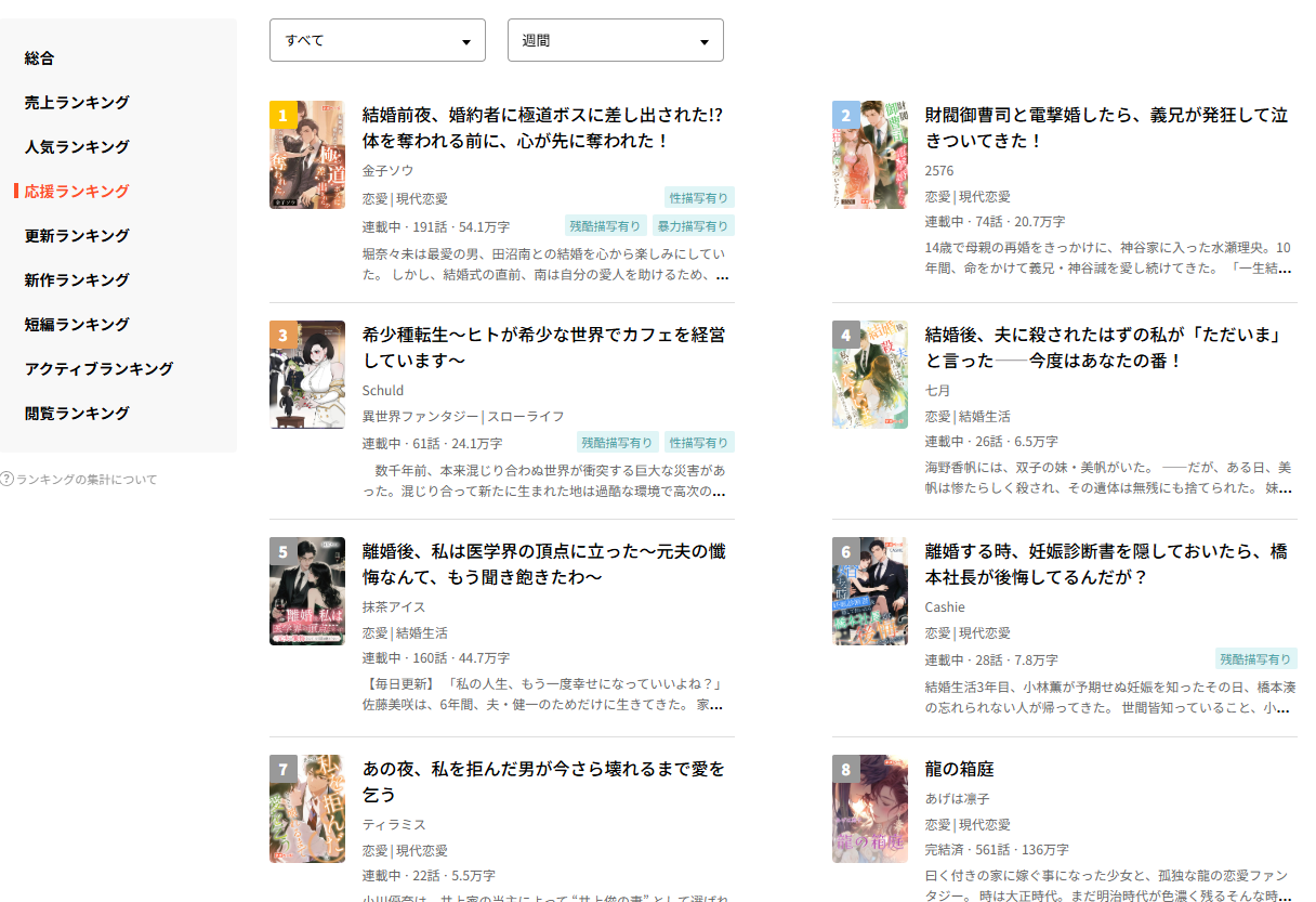 ネオページ編集部では、サイト内の投稿・閲覧動向(ランキング、読了傾向、検索ワード等)を継続的に観測し、創作者・読者双方にとって有益な情報発信を行うべく、編集部による分析特集を段階的に展開してきました。今回の特集はその一環として、女性向け作品の潮流を明確化し、創作や投稿の指針となる知見を共有することを目的としています。