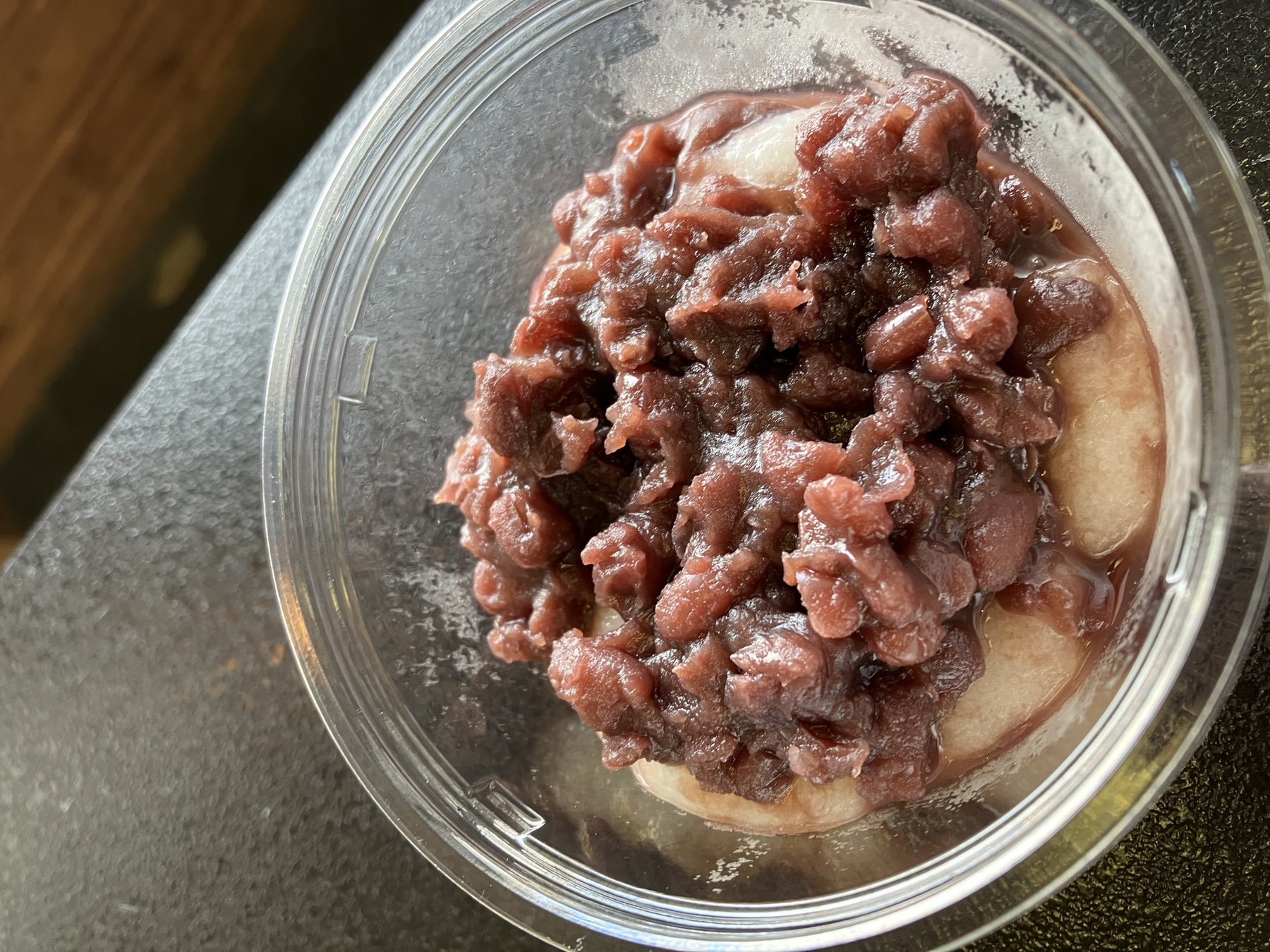 北上産ヒメノモチを使用し、臼と杵を使って手でついたお餅。北海道産の小豆を自社で炊いた特製あんこを使っています