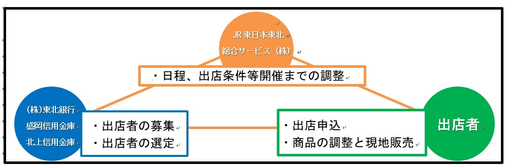 株式会社東北銀行・盛岡信用金庫とJR東日本東北総合サービス株式会社がビジネスにおける需要と供給の一致を目指し、岩手県の地域資源を活用した特産品の商品開発・販路開拓を通じて、地域の魅力を発信し、地域経済の発展に寄与することを目的としています。