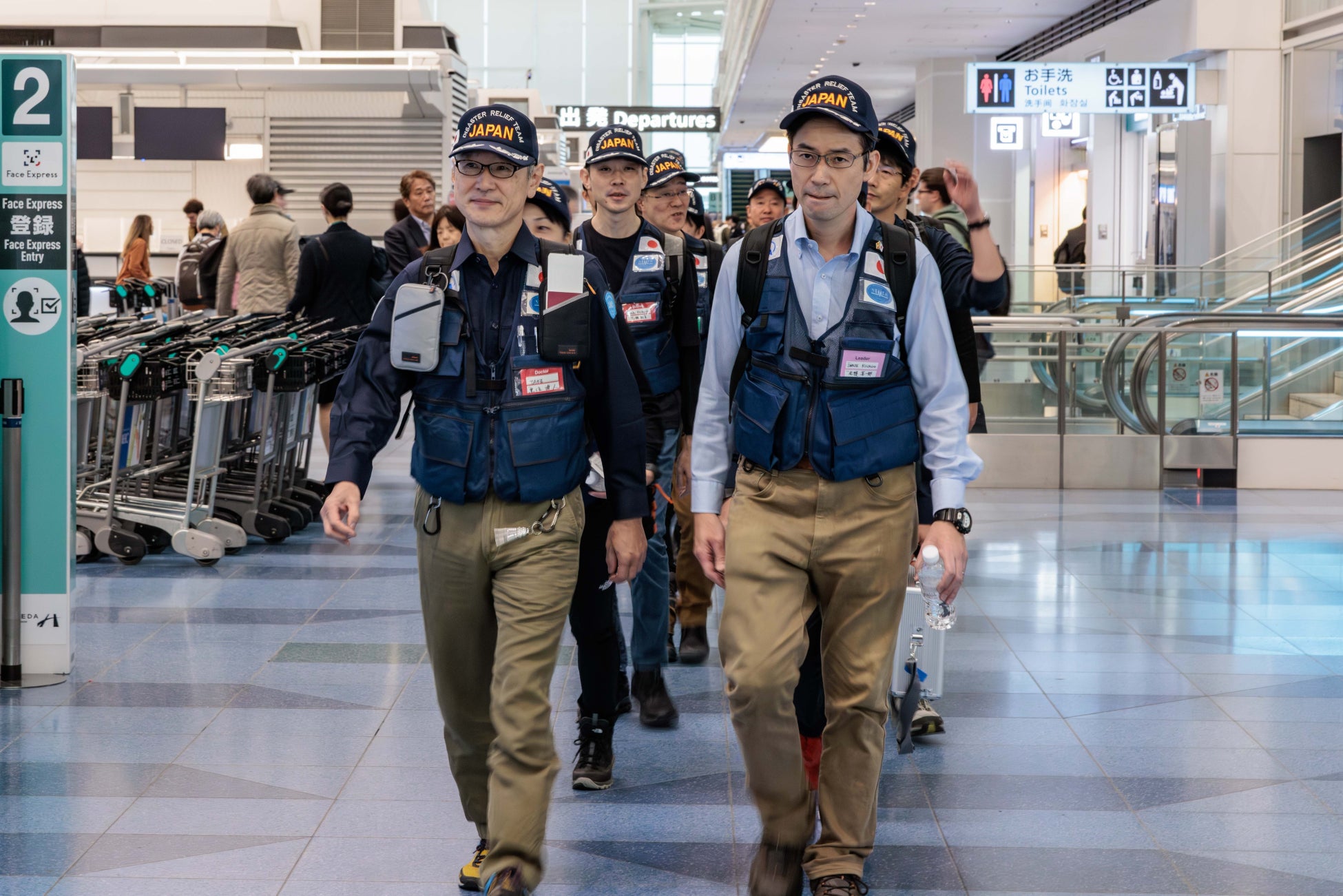 羽田空港で行なった結団式で挨拶した国光あやの外務副大臣は、東日本大震災の際、スリランカの皆さんがまだ寒さが残る被災地に紅茶を届けてくれたことや、戦後スリランカが日本の国連加盟を後押ししたことに触れ、「今は恩返しをする時」と述べました。これに対し、ピヴィトゥル・ジャナック・クマーラシンハ駐日スリランカ大使は「真に支援が必要な今、日本の協力は言葉にできないほどありがたい」と感謝の言葉を述べました。