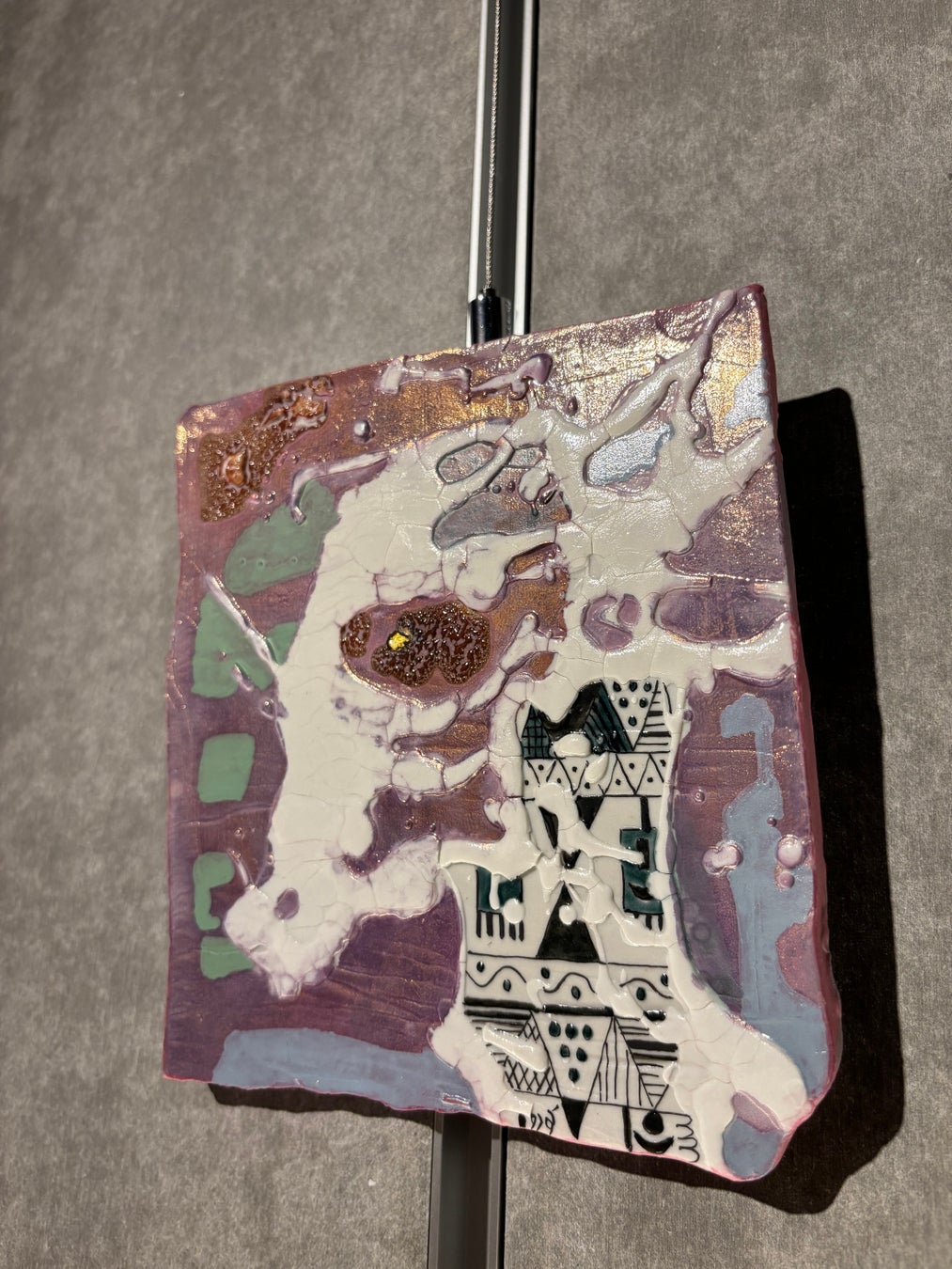 壁面の作品を考えるのは、ほとんど初めてなので、戸惑いもありながら制作しました。かつての経験や想いを感情移入しながら進めると、知らず知らずと色々な方向に志向が行きます。表現されたものは私のセンチメンタルな名残となった。
