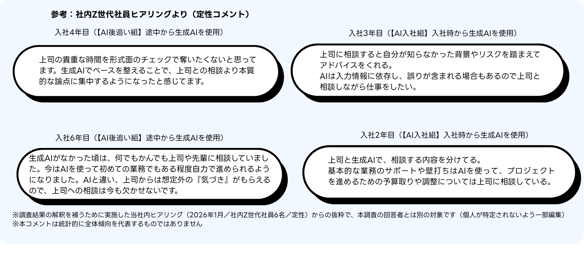 ◾️Z世代の声(社内ヒアリングより/定性):AIは「上司との対話を深めるためのパートナー」