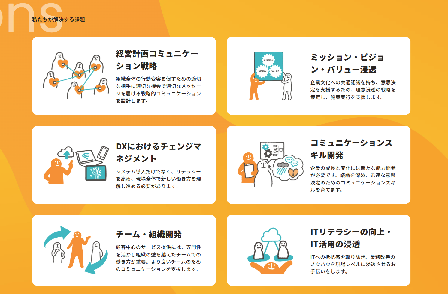 インターナルコミュニケーションの視点から、社内の様々な「もやもや」を解決するための伴走支援。