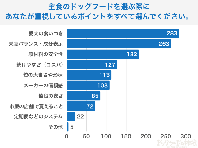 ■ 主食のドッグフードを選ぶ際に、あなたが重視しているポイントをすべて選んでください。
