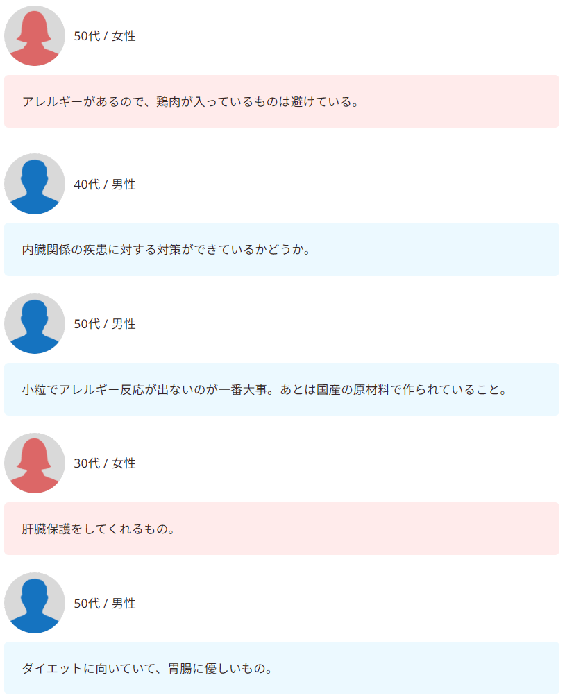 無添加・国産・ヒューマングレードなど“安全性”にこだわって選ぶという声も多数あった。