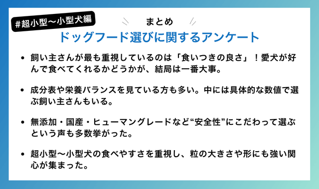 ドッグフード選びに関するアンケートまとめ(超小型~小型犬編)