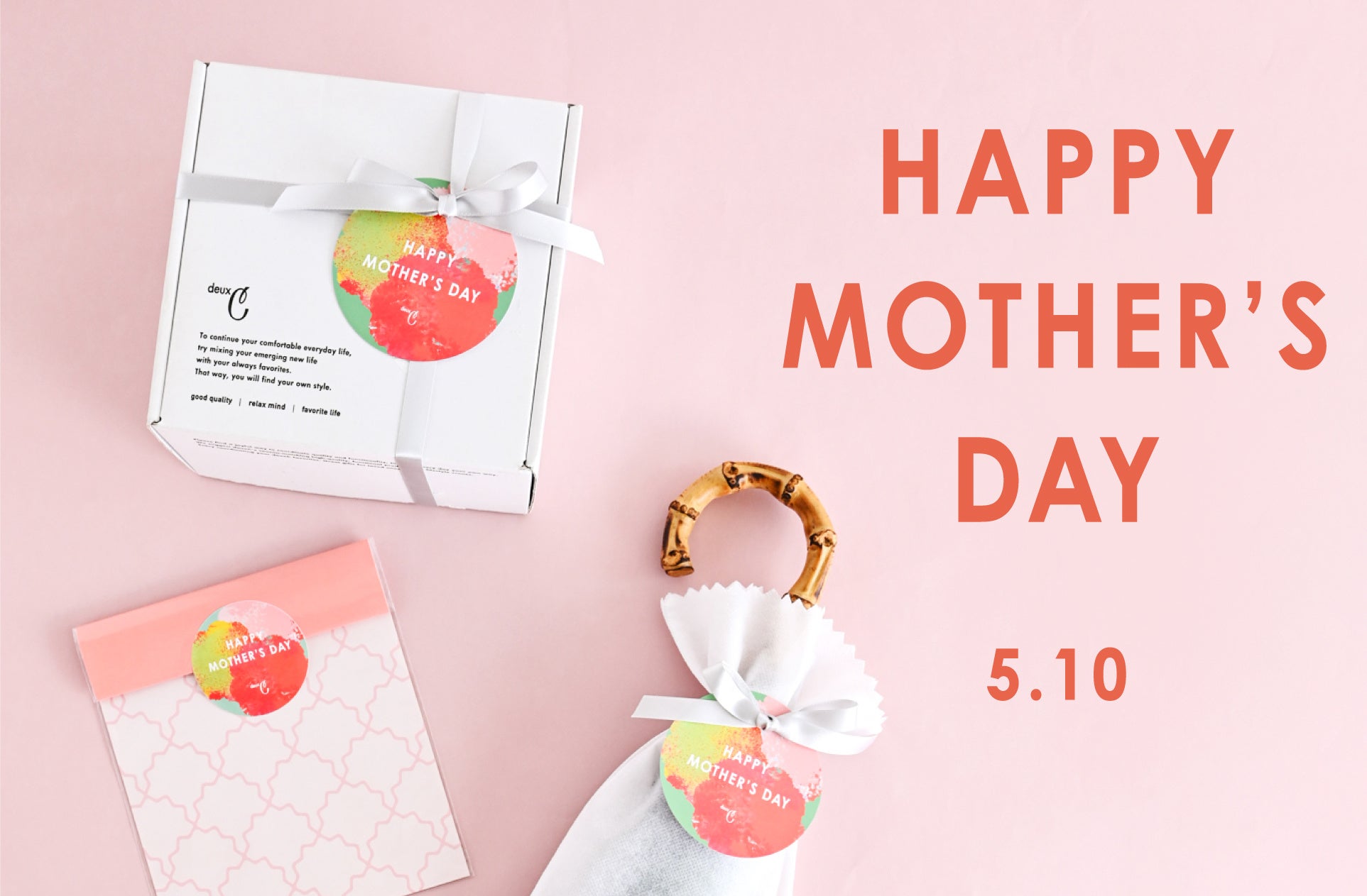 あわせて、deux C(ドゥ・セー)オンラインストアでは、母の日ギフトを贈る皆様を応援して、母の日当日にお届けする「母の日ギフト当日配送サービス」を実施いたします。