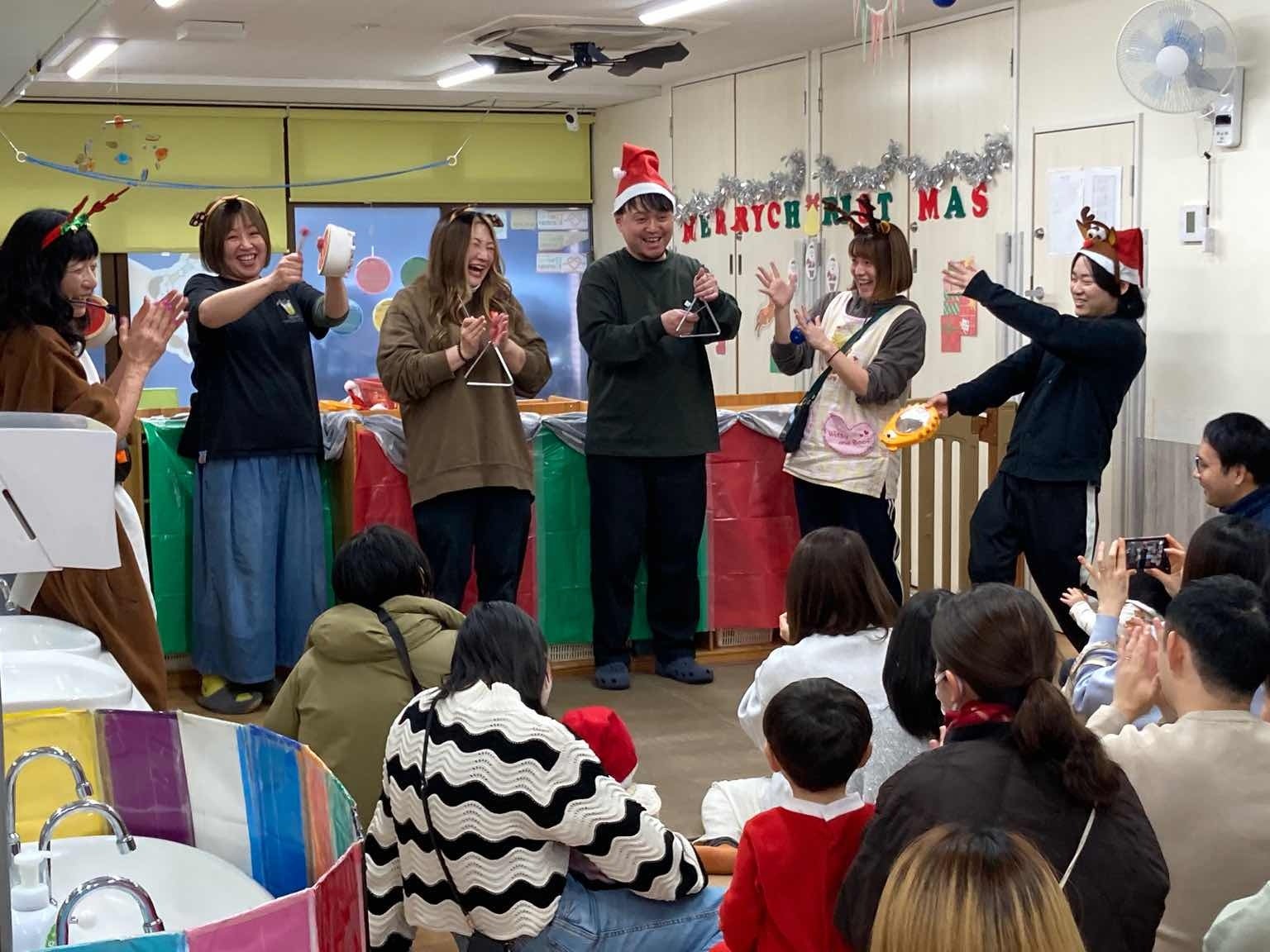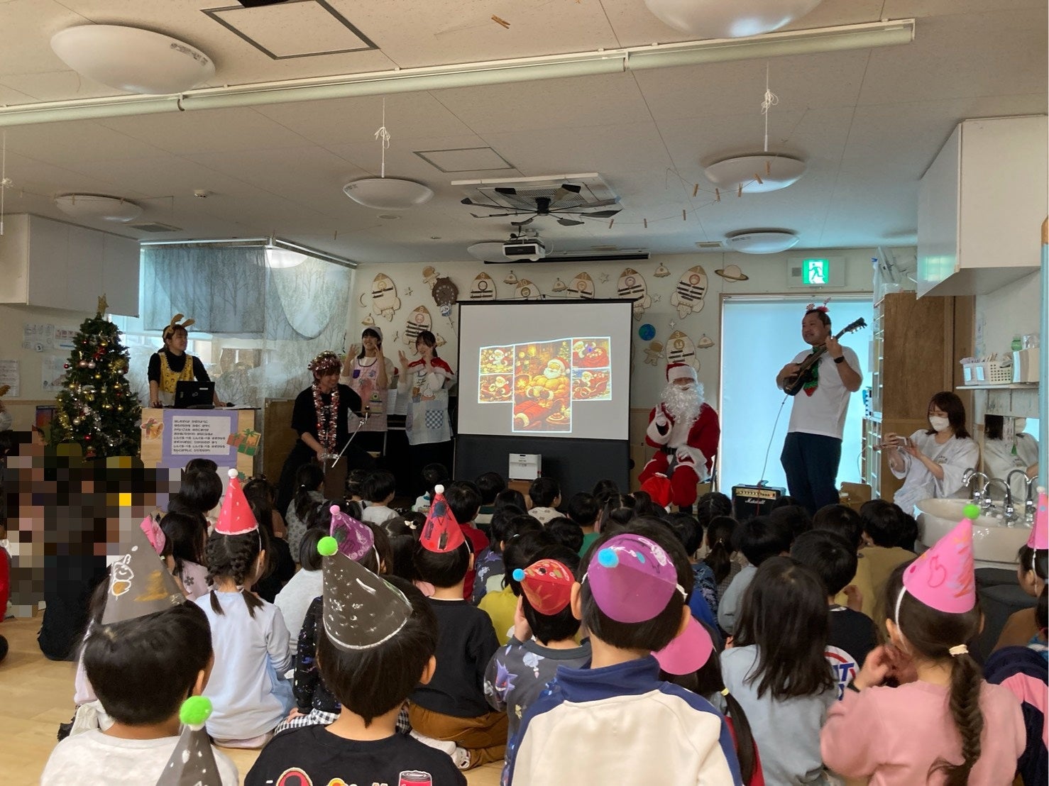 クリスマス会では、保育士によるシルエットクイズや音楽演出、クラスごとの発表など、年齢に応じたプログラムを実施しました。