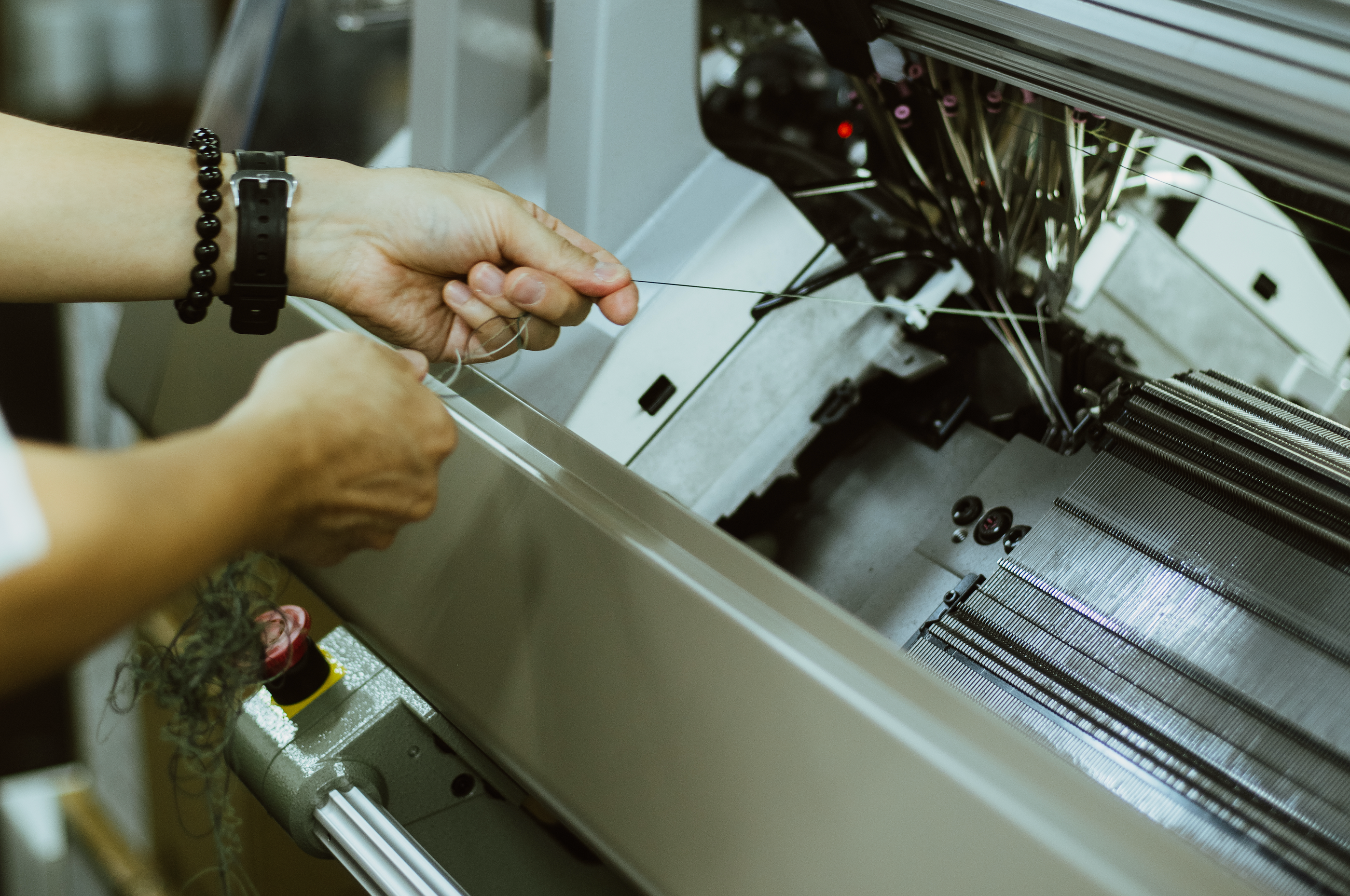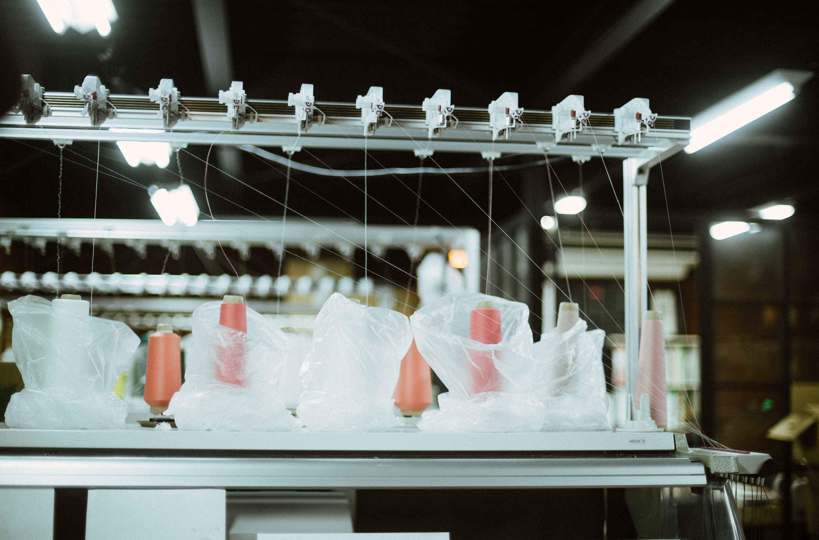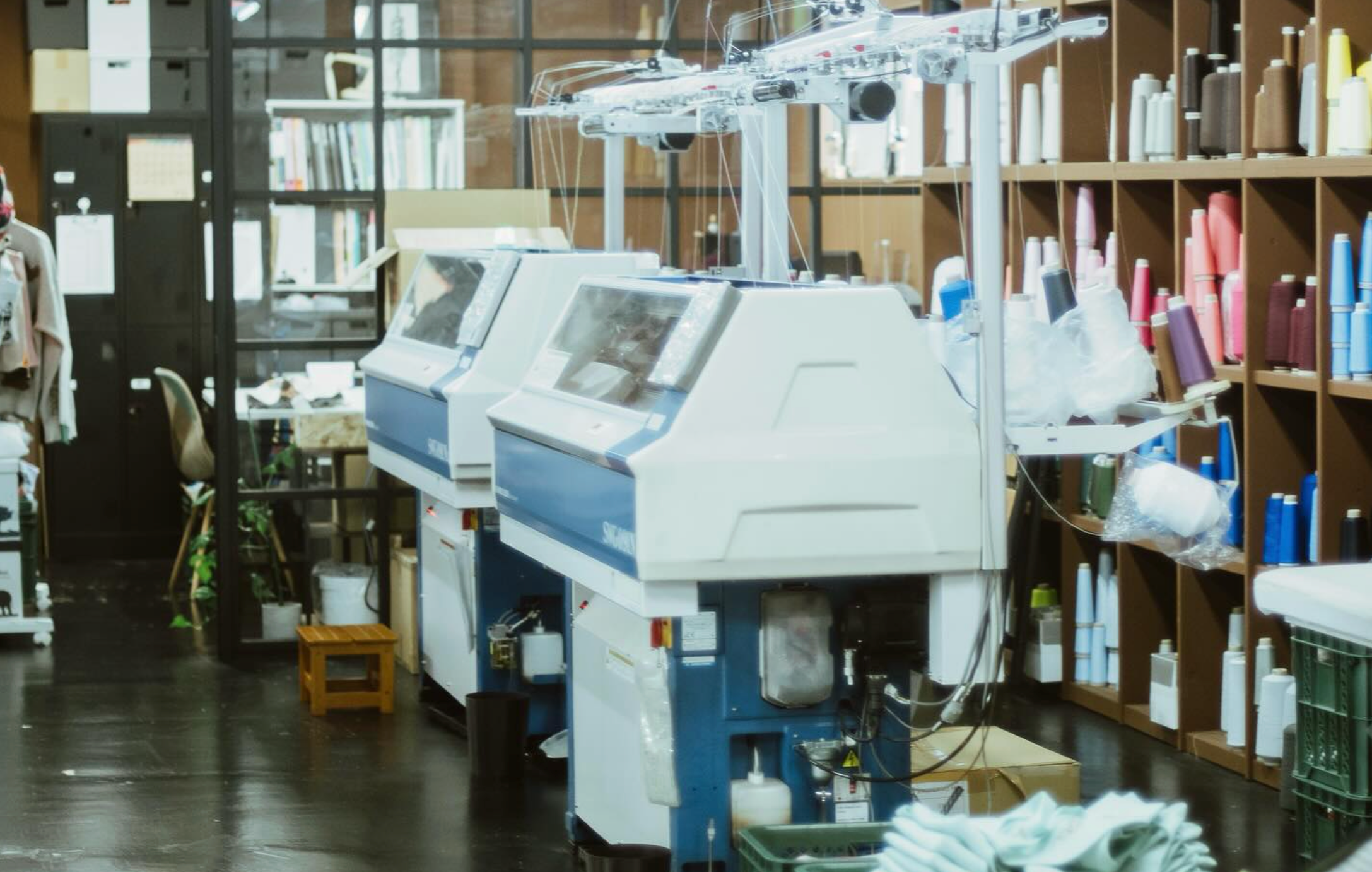 泉州ニット産地として知られるこの地域には、長年培われた紡績・染色・縫製の技術が残り、ラボでは3Dニッティングマシンやミシンを用いた編地の生産から縫製、検品・発送まで一貫して行われています。