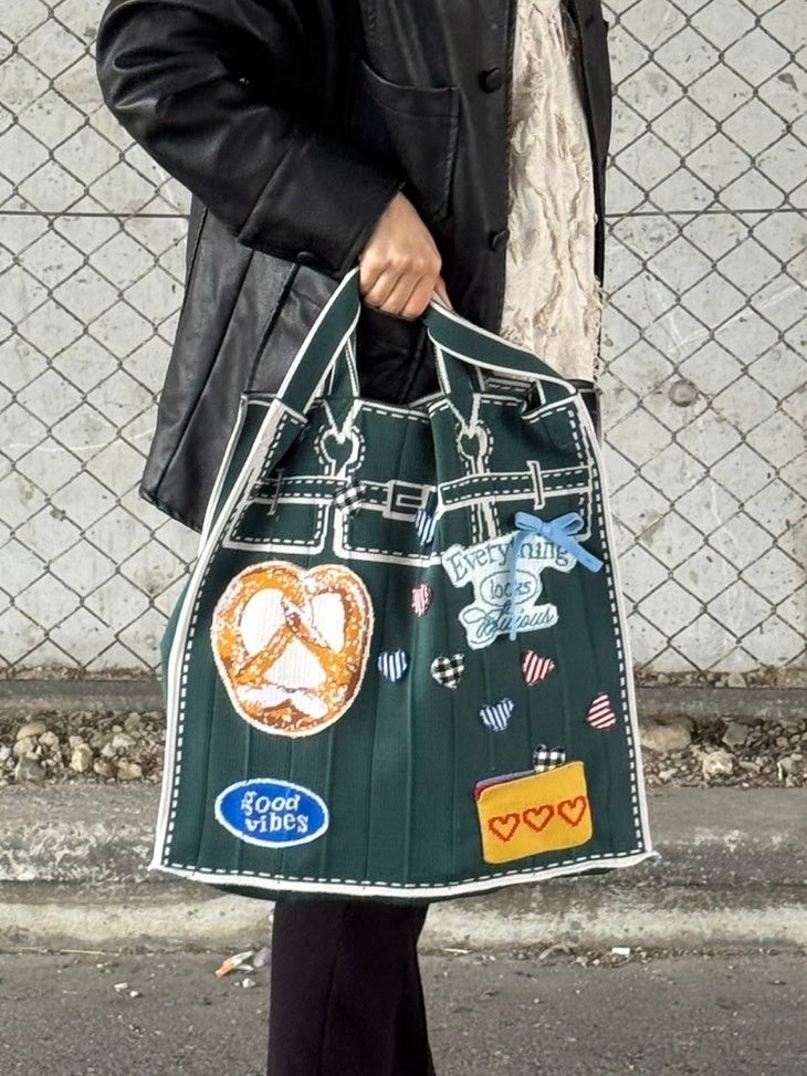 KNT365の代表的なバック、「Knitty」でも編地をふんだんに使用したアップサイクル作品が展開。