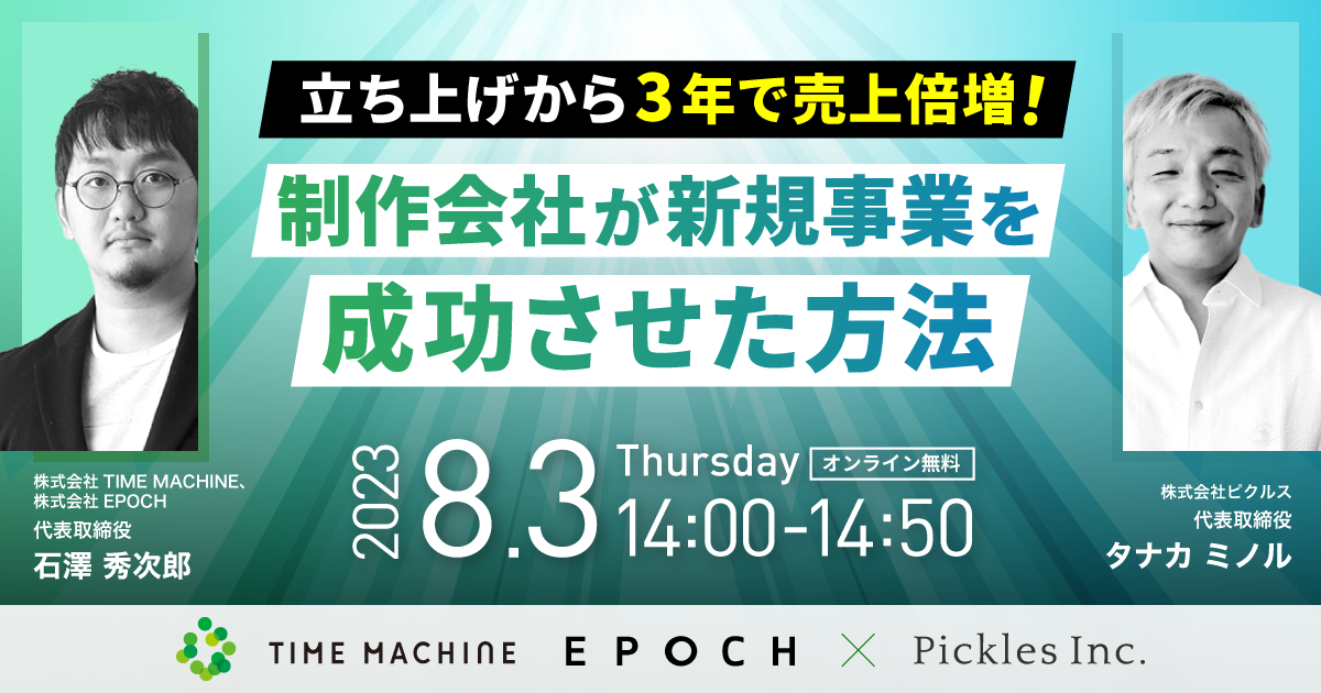 【経営者向けセミナー】 立ち上げから3年で売上倍増!「制作会社が新規事業を成功させた方法」
