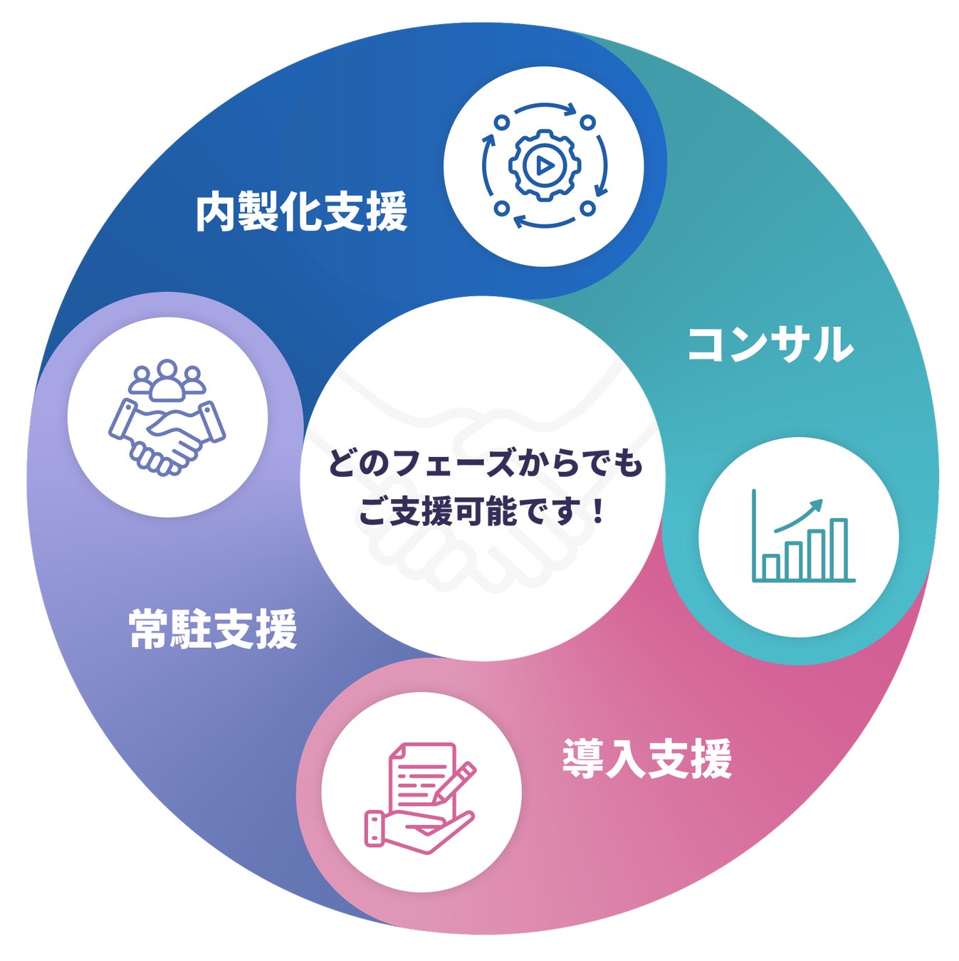 お客様の予算や状況に合わせて、最適な支援体制を柔軟に提供することが可能です。