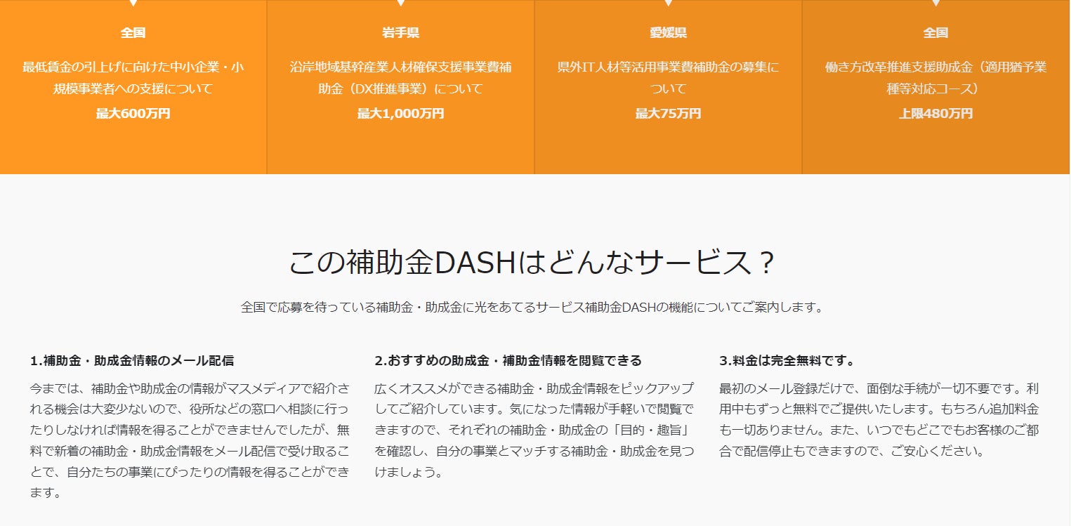 補助金DASH:https://www.nyusatsu-king.com/dash/
