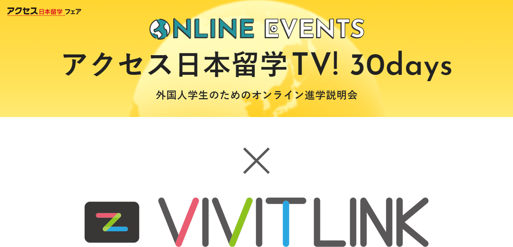オンライン商談受付システムの「VIVIT LINK(ビビットリンク)」が、外国人のためのオンライン進学説明会「アクセス日本留学TV! 30days」のオンライン面談予約ツールとして採用