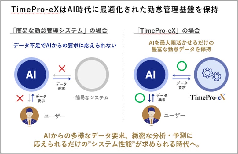 「TimePro-eX」は、業界最高峰の性能とそれを活かす自社SEの伴走支援力を兼ね備えており、まさにAI時代に最適化された勤怠管理基盤です。
