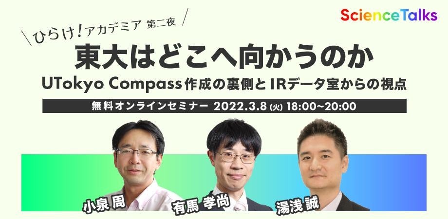 【東大はどこへ向かうのか】〜UTokyo Compass作成の裏側と、IRデータ室からの視点~ 3月8日(火)18時オンラインセミナーbyScienceTalks