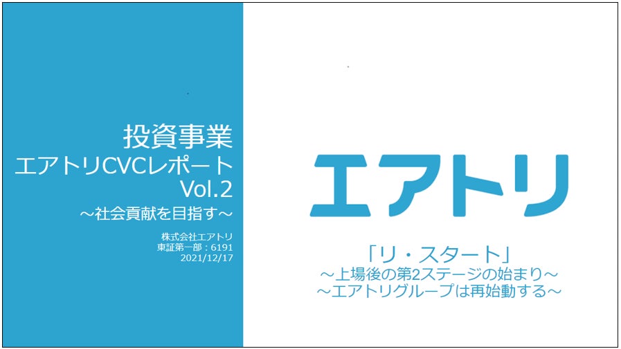 One Asiaのビジョンをかかげ、ITの力で、エアトリ旅行事業、ITオフショア開発事業、訪日旅行事業・Wi-Fiレンタル事業、メディア事業と投資事業を手掛ける株式会社エアトリ(本社:東京都港区、代表取締役社長 兼 CFO:柴田 裕亮、証券コード:6191、以下当社)は、投資事業 エアトリCVCレポート Vol.2を公開いたしましたので、お知らせいたします。