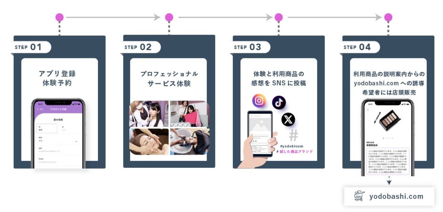ヘアケアカテゴリ以外にも、コスメ、美容家電、スキンケアカテゴリのブースにて、パーソナルカラーを使用したフルメイクアップやプロのエステティシャンによる施術体験も可能。専用のアプリより体験予約をし、体験後にアイテムを店頭もしくはYodobashi.comにてご購入いただけます。