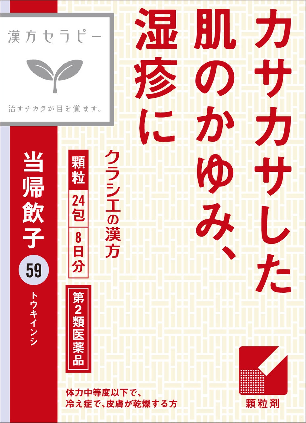 「当帰飲子(とうきいんし)」は、「血(けつ)」を補給する「四物湯(しもつとう)」をベースにした処方です。加齢と共に肌の栄養が不足すると、肌は乾燥しやすくなります。白い粉をふくような乾燥肌で、お風呂に入ると特に痒くなる方に効果的です。