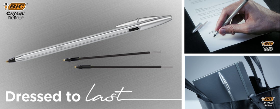 環境性能にも優れたアルミ製“リフィラブル”ボディを採用したプレミアムライン「クリスタル Re'New 1.0㎜」新発売!2023年2月より全国のBIC取扱店、ECサイトにて順次販売開始