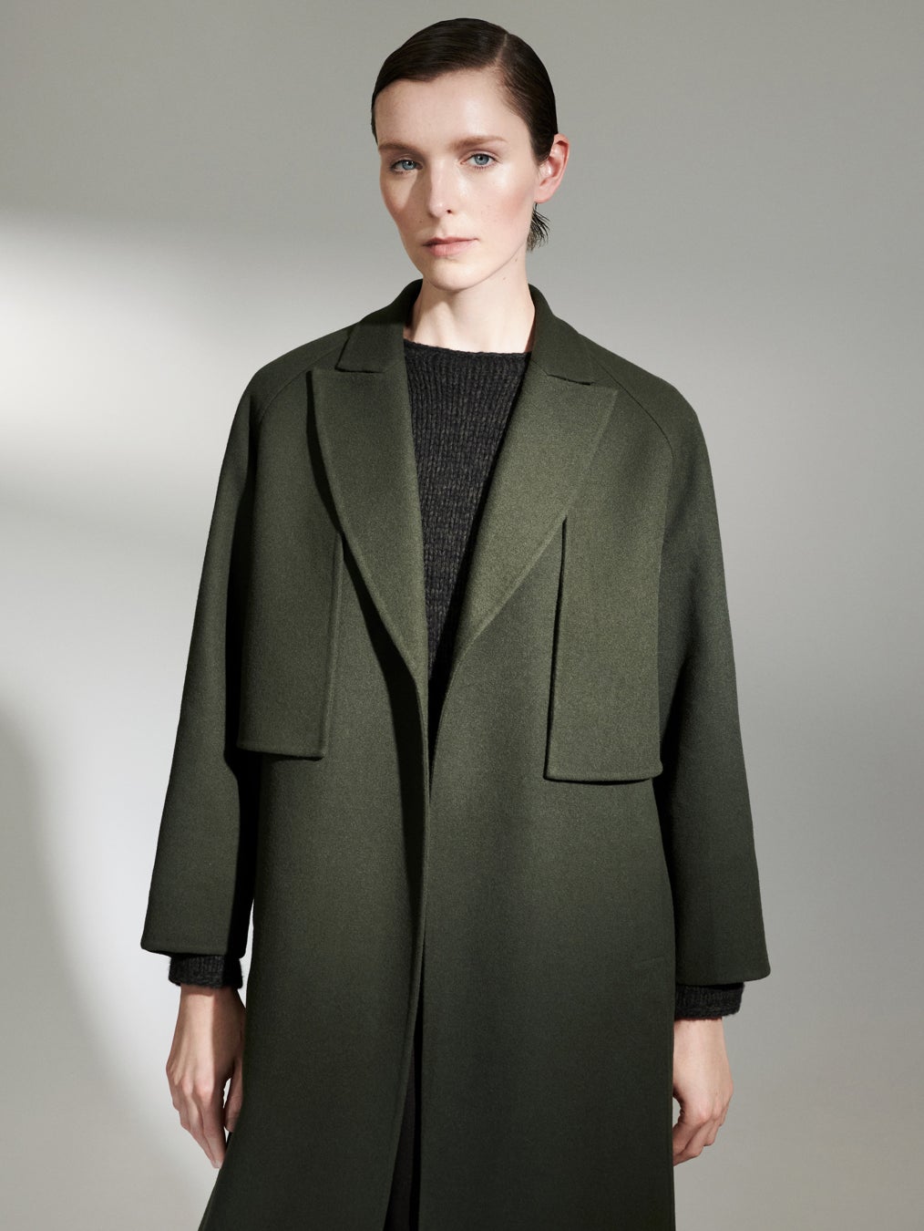 アクリスの初代3wayコートは、2022年秋にキャメルカラーで日本限定発売されたものでした。当時、完売する店舗が続出しそのシーズンのベストセラーになったことがきっかけで、グローバルでも展開することが決定。2024年秋冬コレクションにて「The Duo Coat(デュオ・コート)」という新たな名のもと、ウール素材に、グレージュ、ネイビー、ケールグリーンの3色で再登場しました。