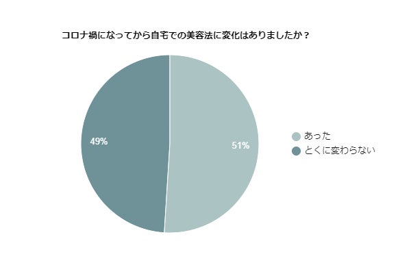 綺和美では、「コロナ禍になってから自宅での美容法に変化はありましたか?」というアンケートを行ないました。すると、約半数にあたる51%の人が「あった」と回答しました。