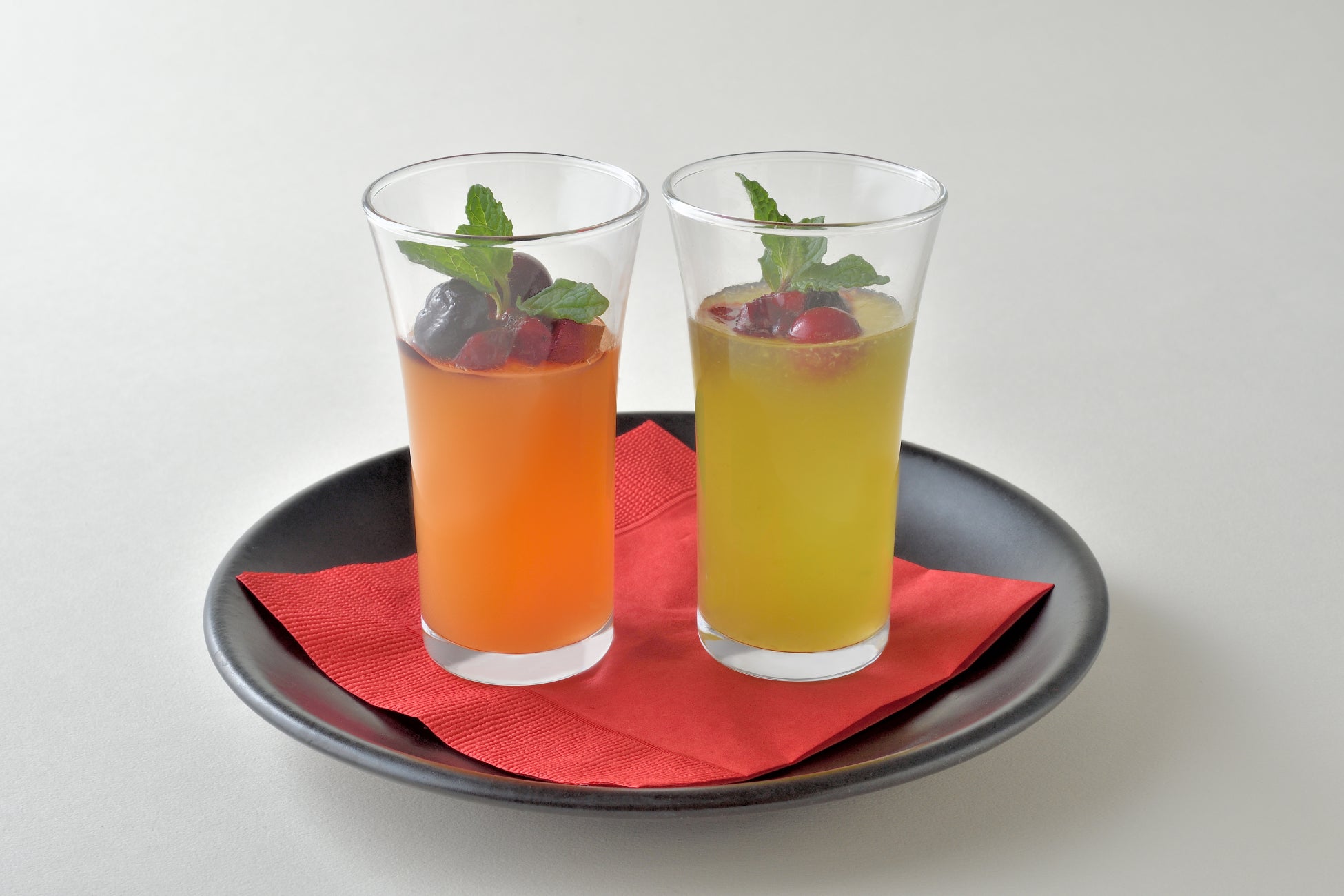 青肉メロンと赤肉メロンのゼリー食べ比べセット。甘さを抑え、各メロン本来の風味がしっかりと主張されている仕上がりに!