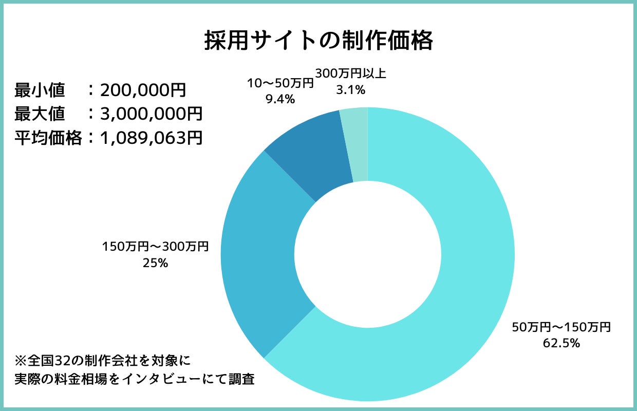 採用サイト制作費 最多制作価格帯:50万円~150万円
