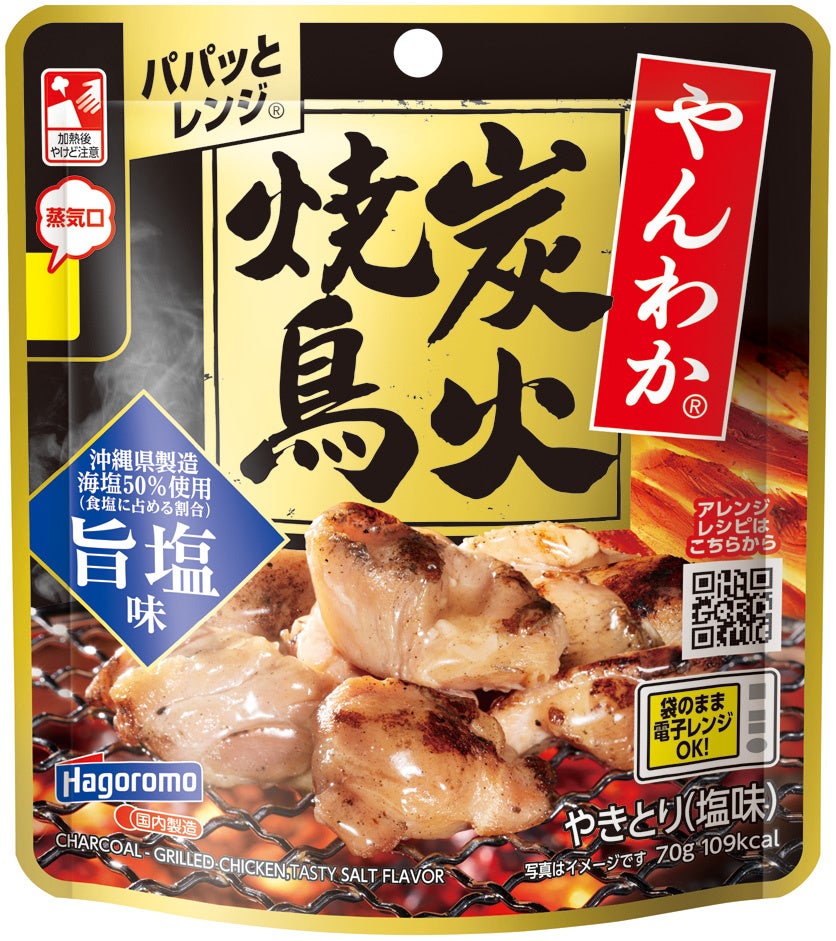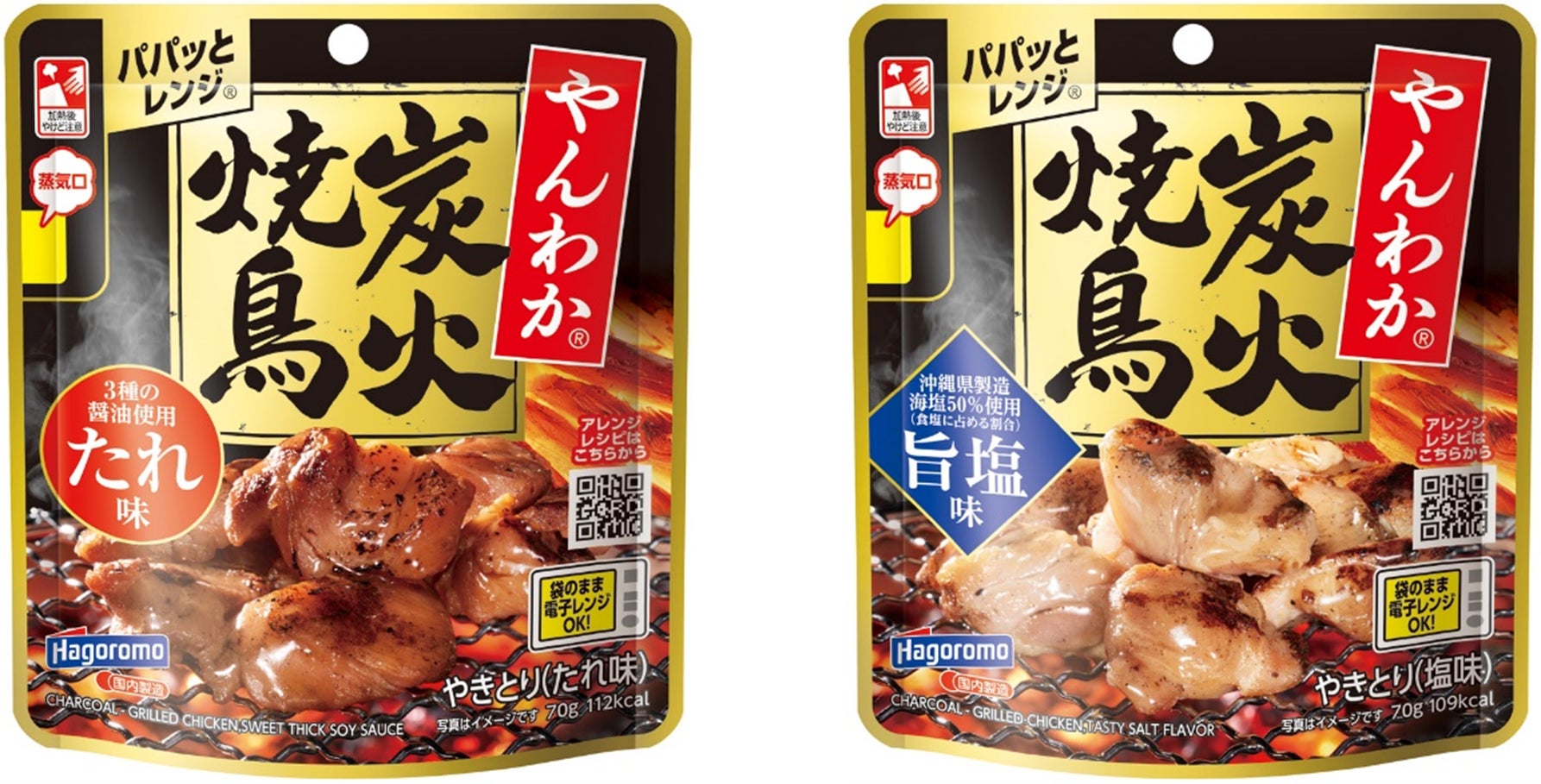 はごろもフーズ株式会社(本社:静岡県静岡市 社長:後藤佐恵子)は、電子レンジ対応パウチを使用し、炙り焼き製法でふっくら焼き上げたやきとり、「やんわか炭火焼鳥」2種を発売します。