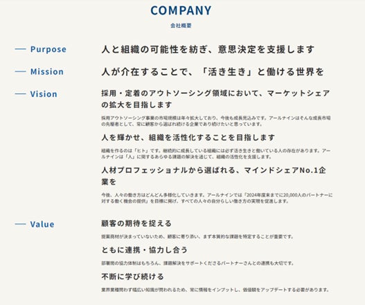 ミッション・ビジョン・バリューを掲載し、お客さまに当社の思いを理解してもらえるページを新設しました。