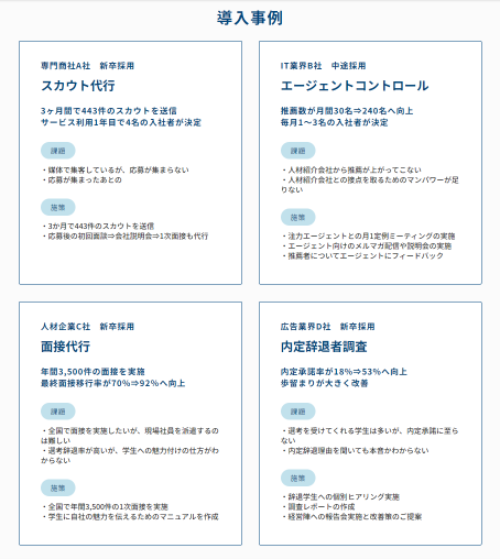 事業内容:採用コンサルティング、採用実務アウトソーシング、社外面談代行、教育研修