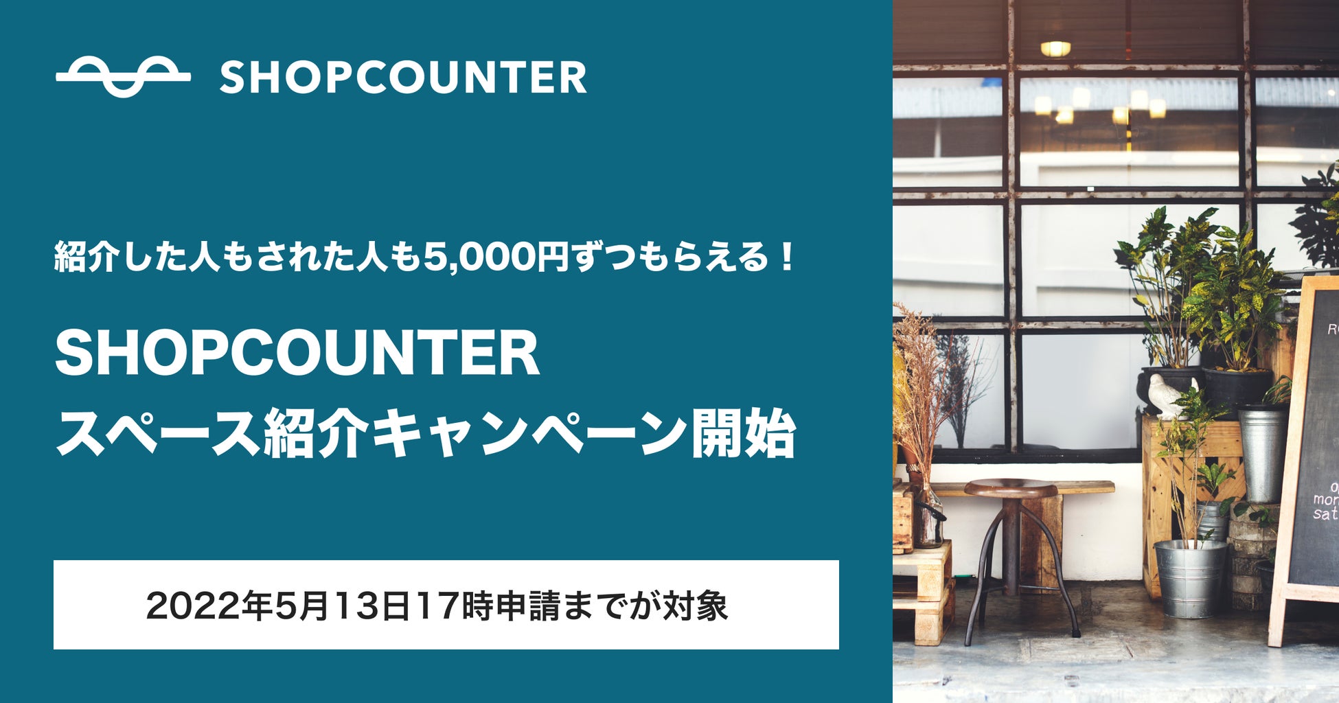 紹介した人もされた人も5,000円ずつもらえる!SHOPCOUNTERスペース紹介キャンペーン開始