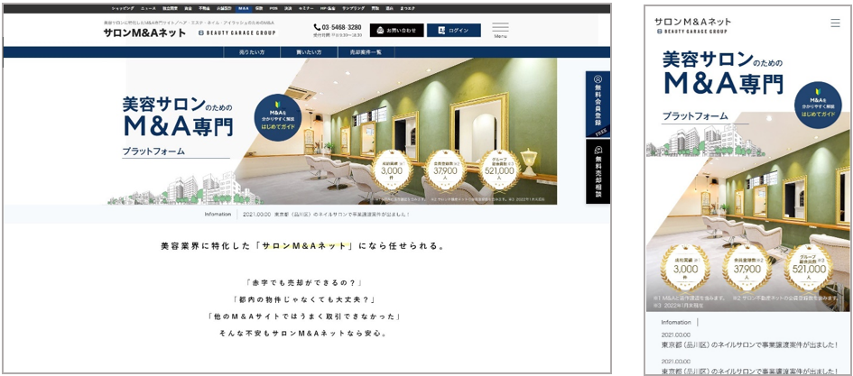 プロ向け美容商材通販最大手の株式会社ビューティガレージ(本社:東京都世田谷区、代表取締役 CEO:野村 秀輝)は、連結子会社である株式会社 BG パートナーズが運営する理美容室・エステサロンなどの美容サロンに専門特化したM&A仲介サイト「サロンM&Aネット(https://salonma.jp/)」を全面刷新し、2022年2月1日にリニューアルオープンいたします。