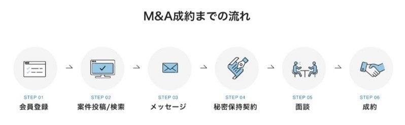 事業を売却したい事業者と購入したい事業者が、チャット機能を通して直接交渉することが可能となります。譲渡契約の成立を運営事務局に通知することで、譲渡側事業者のプラットフォーム利用料は無料となり、また、譲受側事業者も着手金などの初期費用負担はなく、譲渡契約の成立までは無料でご利用いただけます。