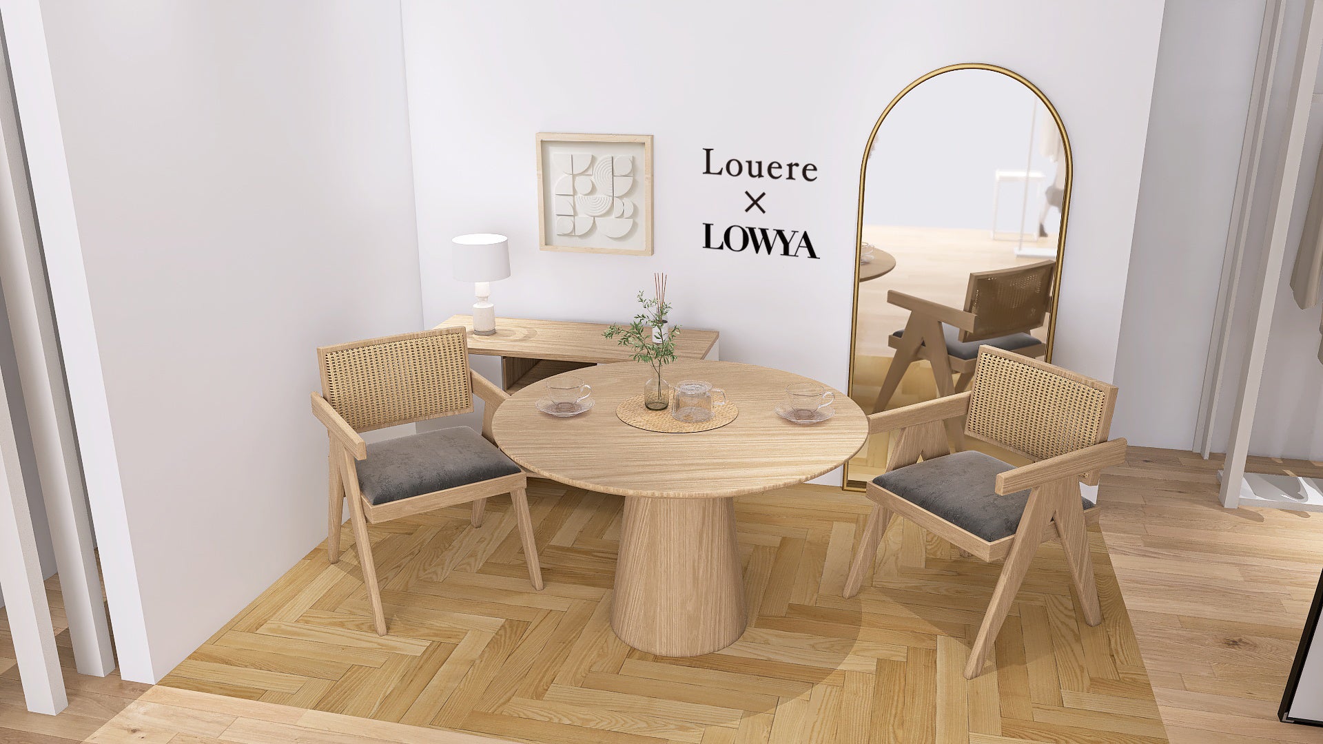 Louereの世界観を、LOWYAで購入可能な家具・インテリアで演出したブースをご体感いただけるポップアップイベントです。 LouereとLOWYAが調和した新たな魅力あふれる特別な空間で、あなたに寄り添う一着を見つけてみませんか?