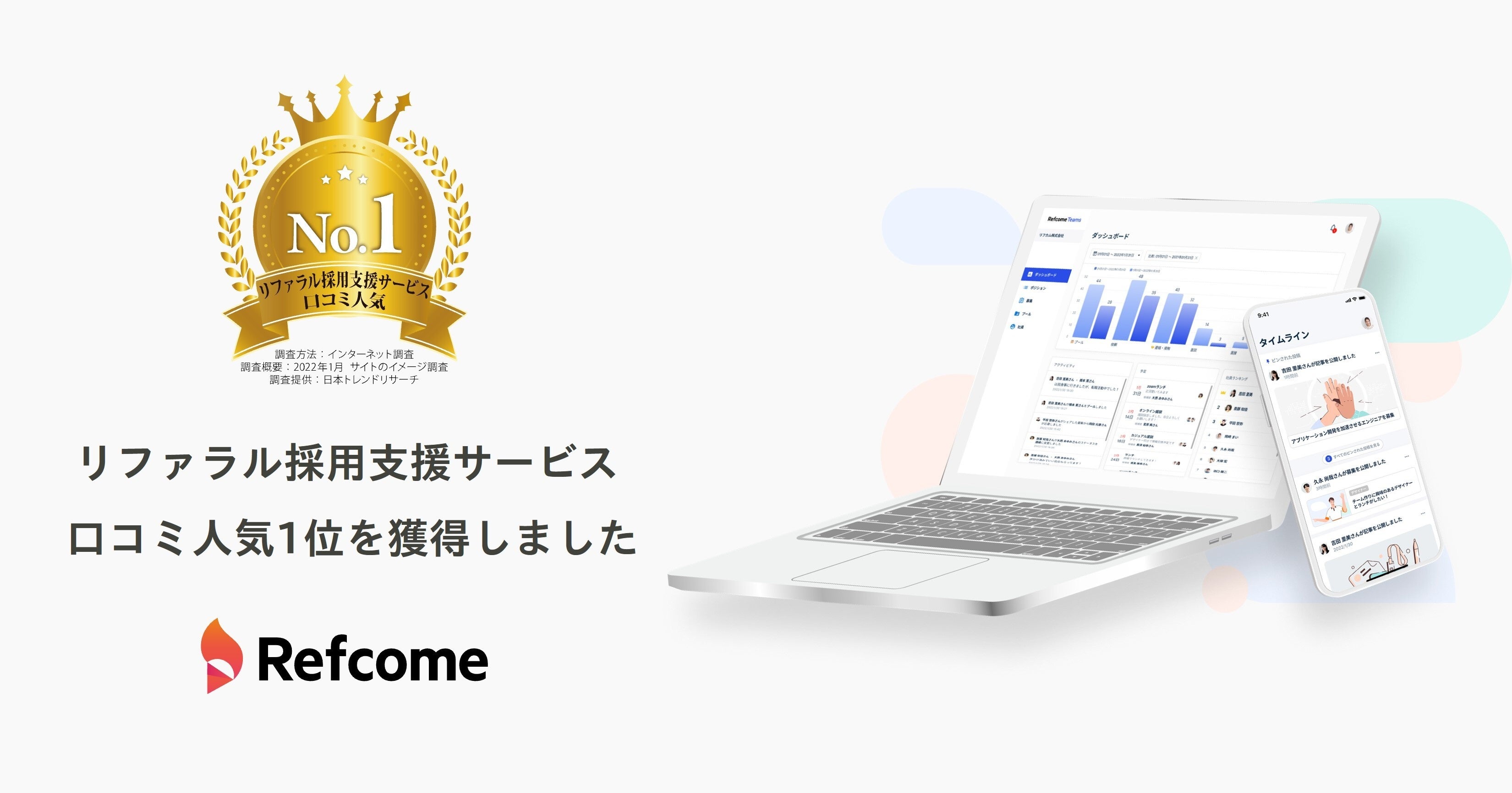 「Refcome」、日本トレンドリサーチによるインターネット調査において、「リファラル採用支援サービス 口コミ人気 1位」を獲得!