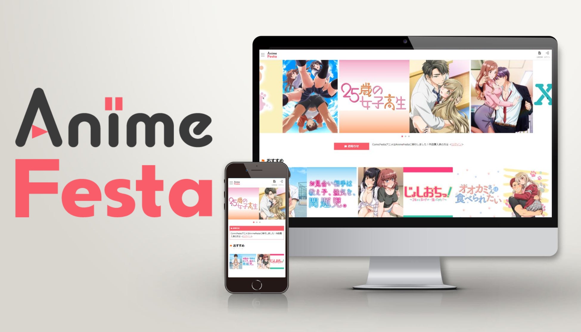 電子コミックやアニメ、ドラマCDなど多彩なコンテンツをマルチデバイスに対応する自社サイトを通じて配信しています。自社で作品を持つ強みを活かし、オリジナルコンテンツをいち早く提供しているほか、『ComicFesta』でしか見ることのできないコンテンツを提供しています。配信コンテンツ数は100万を超え、メジャータイトルも豊富に取り揃えています。