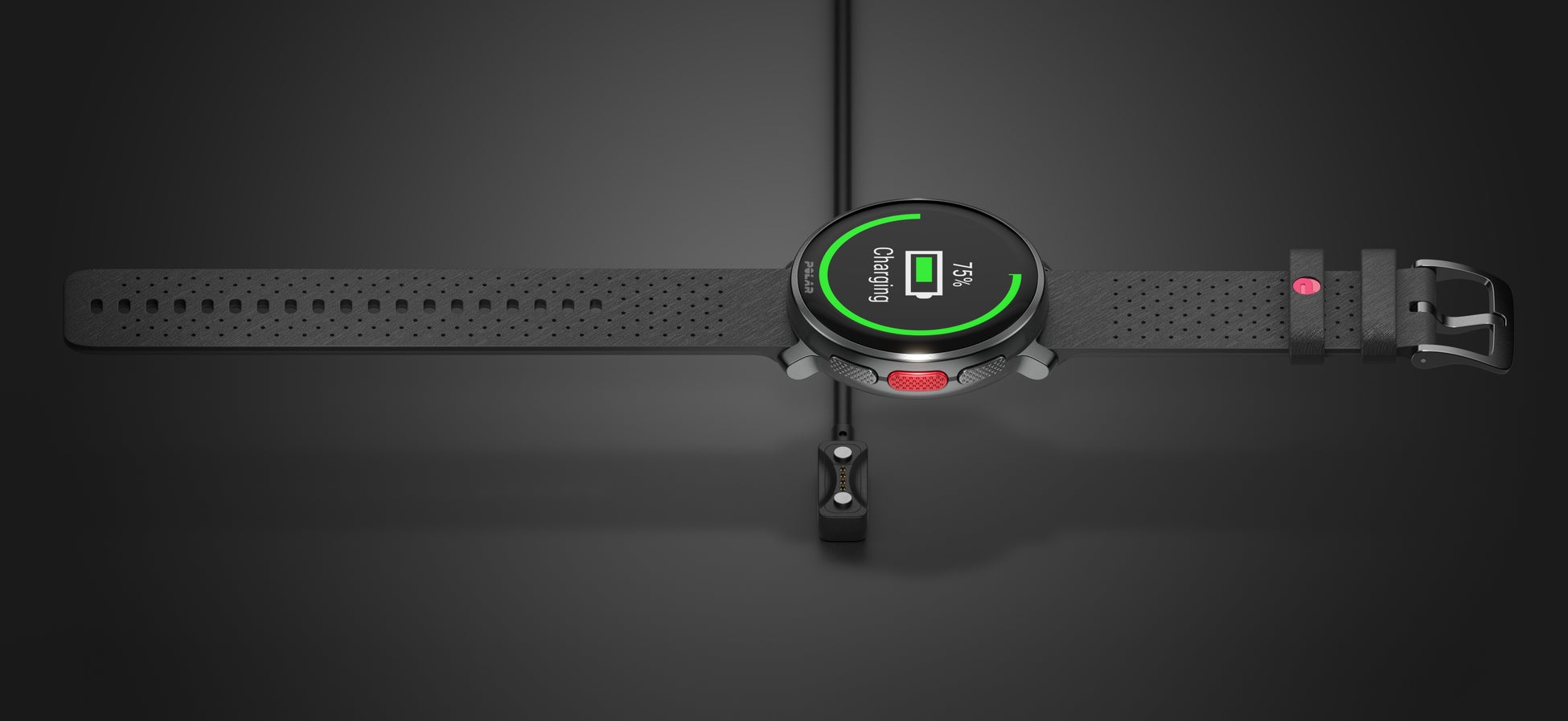 トレーニングの計測中でも、バッテリーが低下してきたら充電表示が出て、トレーニングセッションを止める(データを中断する)ことなく充電することが可能になりました。これによって、より長時間のトレーニング計測が可能になります。