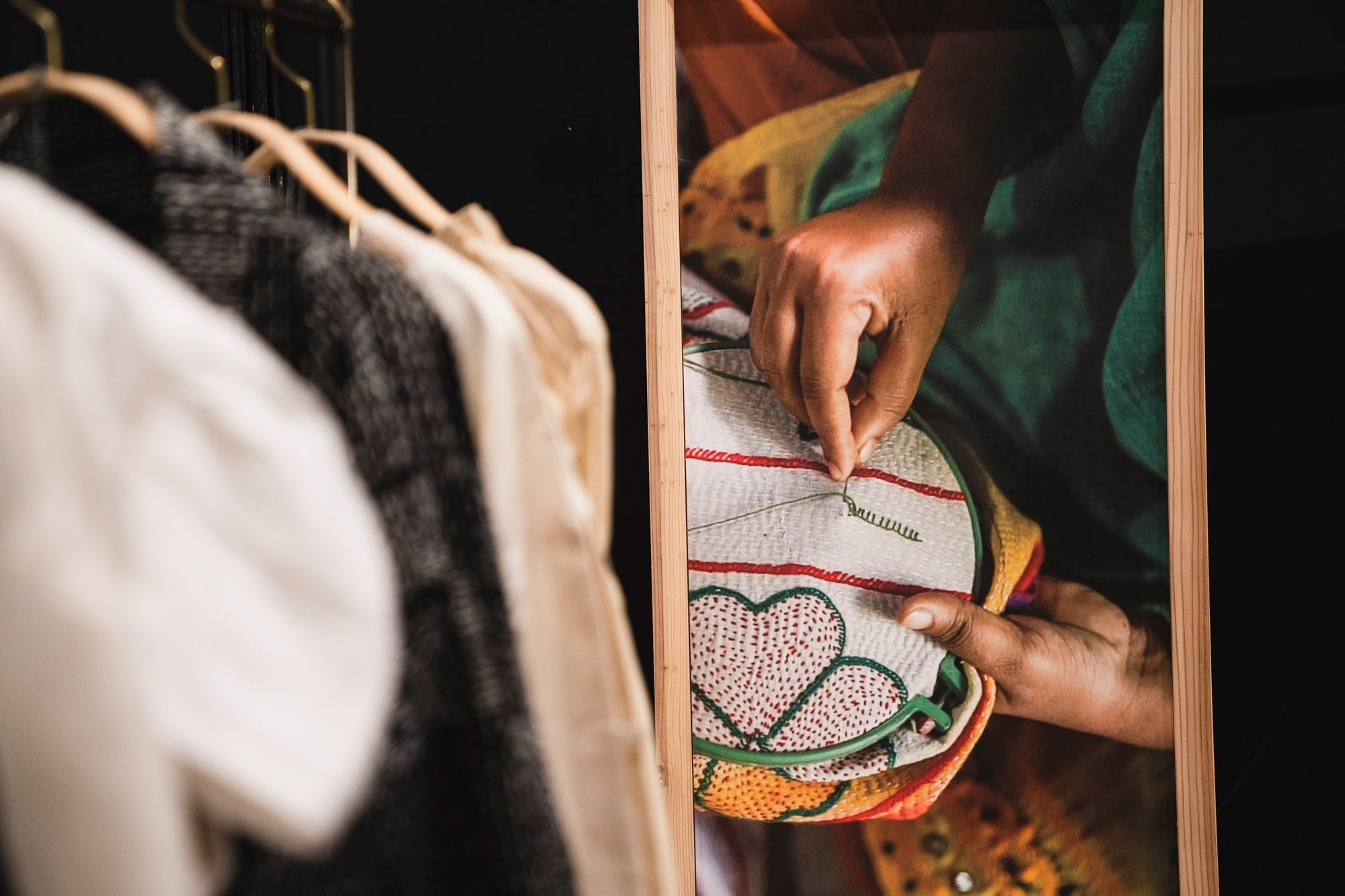 廃棄される衣類を使ったリサイクルファブリックの開発や、それらを活用したオリジナルプロダクトの制作。現地の手仕事から生まれる世界最古の織物「ジャムダニ」の販売や、日本の刺子に似た、伝統工芸「ノクシカタ」を生かした製造の請負、現地の職人とつなぐクラフトツーリズムなどを展開します。