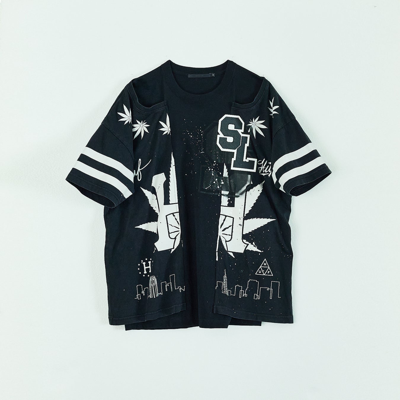 1990年代を中心に世界で人気を博したロックバンドのヴィンテージTシャツ集めて、それを再構築しました。