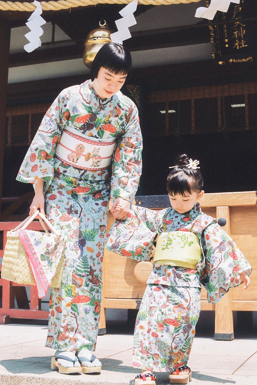 バンビやリスなど森の中の動物たちの柄が可愛らしいゆかたは、ブランド初の親子お揃い柄で展開。