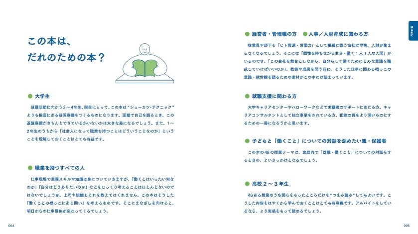 主として大学生・若いビジネスパーソンに向けて書かれていますが、普遍的・根本的な内容を200点を超えるイラスト図解で紐解いていくため、幅広い方々に役立つものになっています。